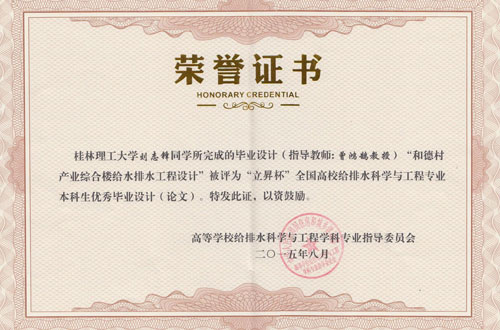 此次大会还分别评选出“多相杯”教改优秀论文10篇、“立昇杯”本科生优秀毕业设计(论文)10篇和“中国给水排水杯”本科生优秀科技创新项目10项,并在大会闭幕式上举行了隆重的颁奖仪式。我校选送的2015届毕业生刘志锋同学完成的毕业设计“和德村产业综合楼给水排水工程设计”获2015年“立昇杯”全国高校给水排水工程专业本科生优秀毕业设计(论文)。此次获奖,进一步彰显了我院给排水科学与工程专业的办学优势和特色。