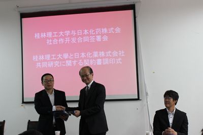 4月23日,我院在教九楼会议室与日本化药株式会社签署合作研发合同。日本化药株式会社研究开发本部部长万谷康弘、研究开发本部参事北折智之、日本化药株式会社新井副总经理,我院教师张文杰博士、张琴老师等中日代表出席签约会。