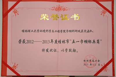 日前桂林市总工会进行了年度表彰,我校环境科学与工程学院的巾帼科研攻关突击队喜获“五一巾帼标兵岗”荣誉称号。受此殊荣的共有26个先进集体,其中桂林市所在的高校仅有两家。