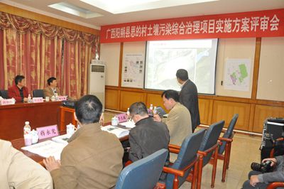 阳朔某村土壤重金属污染问题至今已逾半个世纪,对当地居民健康和生态环境安全构成较大的威胁。阳朔县政府委托我校和中国科学院地理科学与资源研究所编制可行性研究报告,我校组织了精干力量,与中科院地理资源所的同行们一道,于今年6-7月对项目区展开了系统调查和分析,并据此编制了《广西阳朔污染土壤修复试点项目可行性研究报告》。编制组由中国科学院地理科学与资源研究所陈同斌研究员和我校张学洪书记任组长,评审会由宋波教授代表编制组做工作报告。