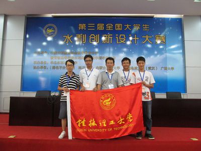 2013年7月28日-7月31日,中国水利教育协会、教育部高等学校水利类专业教学指导委员会主办、华北水利水电学院承办”第三届全国大学生水利创新设计大赛”。我校环境科学与工程学院选送的参赛作品《地下水环境中石油类污染物运移实验模型》在比赛中荣获全国“二等奖”, 指导老师为环境学院的刘汉乐博士、夏源博士,学生代表有水工10级的吴绍权、李伟荣、董鹏伟、黄中俊。