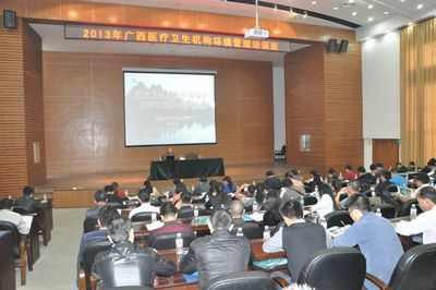 11月6日上午,由自治区环境保护宣传教育中心主办,我校承办的2013年广西医疗卫生机构环境管理培训班在屏风校区图书馆报告厅正式开班。自治区环境保护宣传教育中心主任宋红军、环境科学与工程学院院长曾鸿鹄等出席开班典礼。来自广西柳州、桂林、梧州、来宾、河池、贺州等6个地级市的环保、卫生系统有关业务骨干200余人参加此次培训。