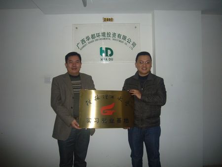 2013年1月9日,我院与广西华都环境投资有限公司(以下简称华都公司)签订联合办学协议,在华都公司建立实习就业基地。华都公司是广西大型环保公司,业务范围包括:设计、供应城市污水处理和垃圾设备、成套自控、电器安装调试及获特许经营权,城乡基础设施和政府重点工程的投资融资建设及管理。华都公司在垃圾处置和渗滤液处理方面具有鲜明的特色和优势,在芩溪、马山、桂平和湖南等地建设和运营了多个垃圾填埋场和配套的渗滤液处理站。该基地的建设对不断丰富环境工程专业实习基地的类型和学生实习内容具有重要的作用。