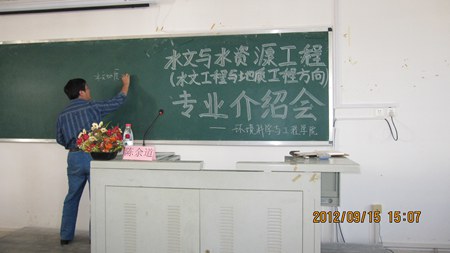 9月15日下午15:00,在雁山校区05311教室,陈余道博士为我院水文与水资源工程专业(水文地质与工程地质方向)的12级新生进行专业介绍。