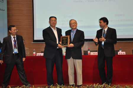 会议闭幕式上,海外华人环保协会为我校张学洪校长和我院王敦球院长颁发了海外华人环保协会杰出贡献奖,同时为本次会议评选的10篇优秀教师论文和30篇优秀研究生论文颁发获奖证书和奖金。我院赵文玉副教授的论文"污水再生处理雾化曝气臭氧氧化运行费用分析"获得优秀教师论文,研究生李亮和王思明的研究论文分别获得优秀研究生论文。此次会议的召开极大地促进了海内外专家学者以及研究生之间在环保方面的交流与学习。