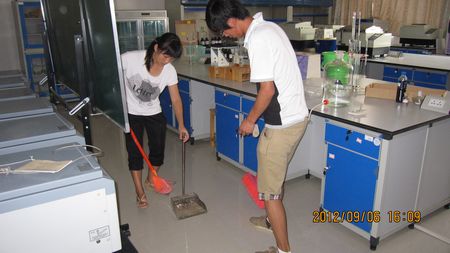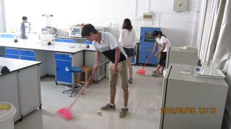 9月6日下午,我院部分学生党员在孙志强老师的带领下前往9栋实验楼进行大扫除活动。通过实际行动,表达了莘莘学子对老师们的崇敬之情。同学们在领取了清洁工具后便开始分工清理各个实验室,扫地擦窗,整理实验仪器,整个清扫活动进行了将近两个小时。尽管天气炎热,却挡不住同学们的热情,大家纷纷表示打扫累点不算什么,为辛苦的老师尽些绵薄之力,以此表达学生对老师们的感激之情。