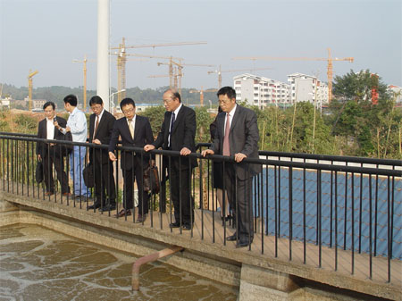 座谈结束后,双方人员来到了雁山校区污水处理站,张学洪校长与和地彰总监共同为“中日膜技术研究中心”举行揭牌。揭牌后,和地彰一行实地参观考察了污水处理站以及我院实验室。