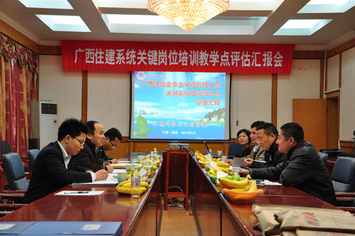 2011年3月15日下午,广西住建厅培训中心湛主任一行到我校对环境学院、土木学院的两个教学点进行教学评估检查。我院与土木学院在教八楼三楼会议室召开“广西住建系统关键岗位培训教学点评估汇报会”。我院院长王敦球教授、副院长曾鸿鹄教授及土木学院的党委书记刘宝臣教授、副院长刘之葵教授等领导出席会议。