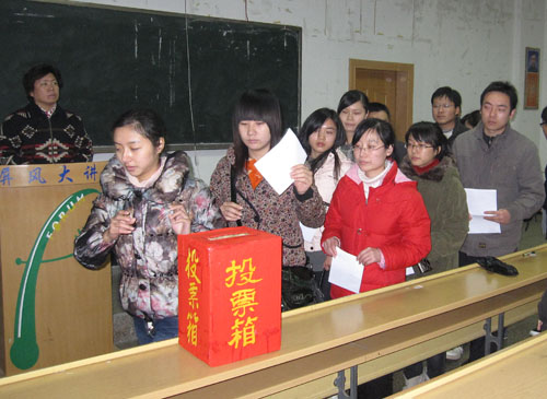 根据学校党委组织部批复,1月11日下午4:00,环境学院在9101教室环境召开了党委委员选举大会,学院全体在校正式党员参加了大会。选举大会由学院党委书记卢英同志主持,按规定程序,通过了总监票人、监票人,通过了《桂林理工大学环境学院党委委员选举大会选举办法》,然后,会议按既定程序进行了直接差额选举。此次选举需增选党委委员5名,经计票,刘康怀、方荣杰、朱义年、刘志丽、张 华(以姓氏笔画为序排列)5位同志当选为学院党委委员。
