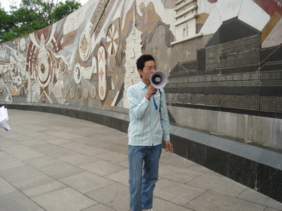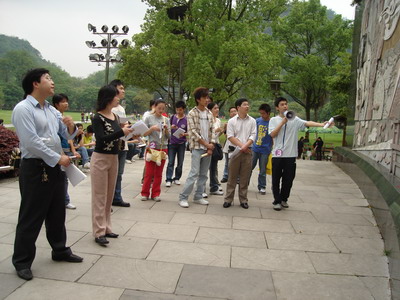 五·四青年节八十八周年纪念日即将来临之际,为了让广大团员青年更深入地了解中国的历史,加强理想信念教育,培育中华民族精神,践行社会主义荣辱观。2007年4月1日上午9:00 ,资环系分团委学生会在七星公园华夏之光广场举行了“弘扬民族文化 讲解华夏之光”讲解比赛。分团委书记刘伟老师、辅导员周德海老师、刘志丽老师应邀参加并担任评委。