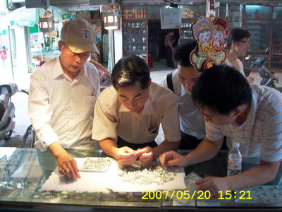 为增强资环系青年教工之间的交流,提高我系青年教工工作热情,更好地为学校“两申”发展目标作贡献,2007年5月19日我系青年教工在桂林市瓦窑宝玉石批发市场开展了一次主题为“了解专业知识,提高文化素养”的团组织活动。为使活动取得更好效果,本次活动还邀请了资环系宝玉石教研室的FGA专家曾伟来老师进行现场指导和介绍。