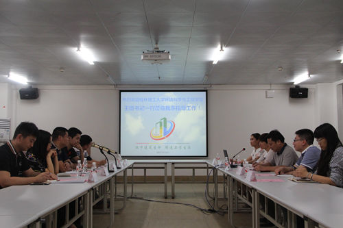 会上,党总支书记周舟致欢迎辞,对我院王书记一行的到来表示热烈欢迎,并介绍了该院目前的办学情况和建筑设备与环境工程系应用型本科工作的现况,周舟书记分别从应用型本科班学生党员发展标准、程序等党建工作、学工管理中的安全教育工作、学风建设和英语四级管理办法、在校获奖情况以及贫困生认定和排序方法等方面作了详细汇报。并提出了目前阶段还亟需解决的一些问题;入党积极分子党校学习的结业证书是否予以认可;发展党员的过程中如何更好地进行共同培养;以及教育系统成绩未能同步、重修对接不畅等问题。