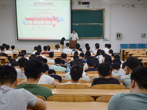 会议主要内容包括专业评估到专业评估认证,工程教育认证的新理念,评估认证基本工作以及我校给排水专业评估认证情况。赵老师通过PPT讲解的形式向同学们介绍了我国给排水专业的现状,阐述了专业评估认证的目的是加强国家和行业对高校给排水科学与工程专业教育的宏观指导和管理,并着重强调“以学生为中心”的评估认证核心理念。同时,赵老师希望我院同学们努力学习、提升自己的人生价值,学会自学,珍惜宝贵的大学时光,抓住全面提升自己的机会。