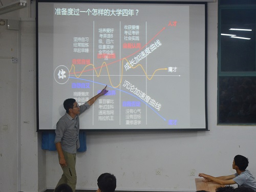 最后,宋海民老师从学风建设、人际交往、科技实践、日常管理、安全教育等方面引导广大新生及时了解大学学习生活的方式方法,养成良好习惯,更好地感悟青春,提升自我,收获成长。