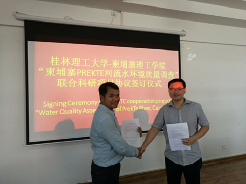 会上,李院长首先对Ly Sarann院长一行的到来表示热烈的欢迎,随后简要介绍了环境学院的情况,并总结了过去两年间我院与柬埔寨理工学院在实验室建设、学生交流、科研合作等方面合作的成果。Ly Sarann院长也向我院教师介绍了柬埔寨理工学院的科研团队、主攻方向及技术优势等,并对双方即将开展的科研合作表示期待。最后,双方就“柬埔寨PrekTe河流水环境质量调查”这一研究课题签订了合作协议。本次与柬方的合作将进一步提升我院科研水平及科研成果转化能力,为“一流学科”的建设添砖加瓦。