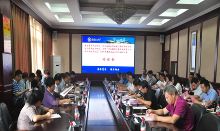 本项目由中山大学仇荣亮教授主持,项目涵盖6个课题(我校游少鸿教授系课题4负责人),涉及来自中山大学、国土资源部土地整治中心、农业部环境保护科研监测所、广东工业大学、中国农科院农业资源与农业区划研究所、桂林理工大学、上海交通大学、华中农业大学、南京农业大学、广东省农业科学院农产品公共监测中心、中国科学院南京土壤研究所、中国科学院植物研究所、暨南大学、湖南农业大学、海南大学、航天凯天环保科技股份有限公司、广西博世科环保科技股份有限公司等20家单位共计50余名科研人员参加了本次研讨会。桂林理工大学王敦球副校长莅临了大会开幕式并作重要讲话,会议由桂林理工大学环境科学与工程学院游少鸿常务副院长主持。浙江大学杨肖娥教授、中科院地理所周小勇博士、桂林理工大学宋波教授作为特邀嘉宾出席了会议。