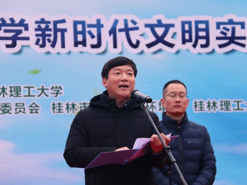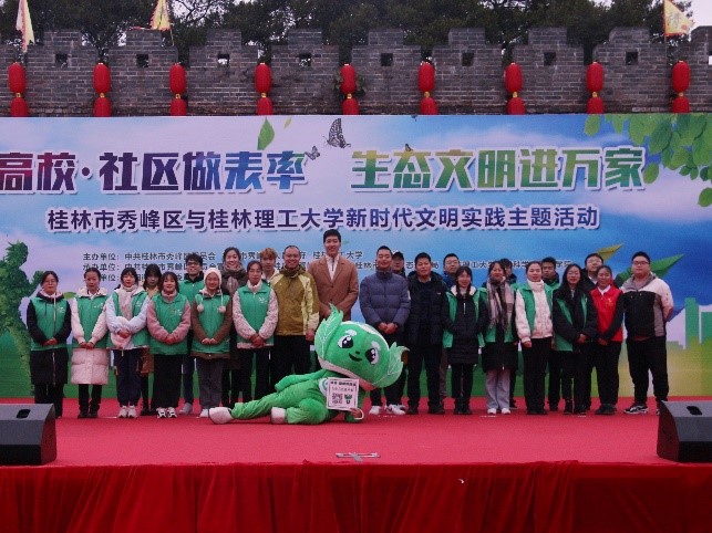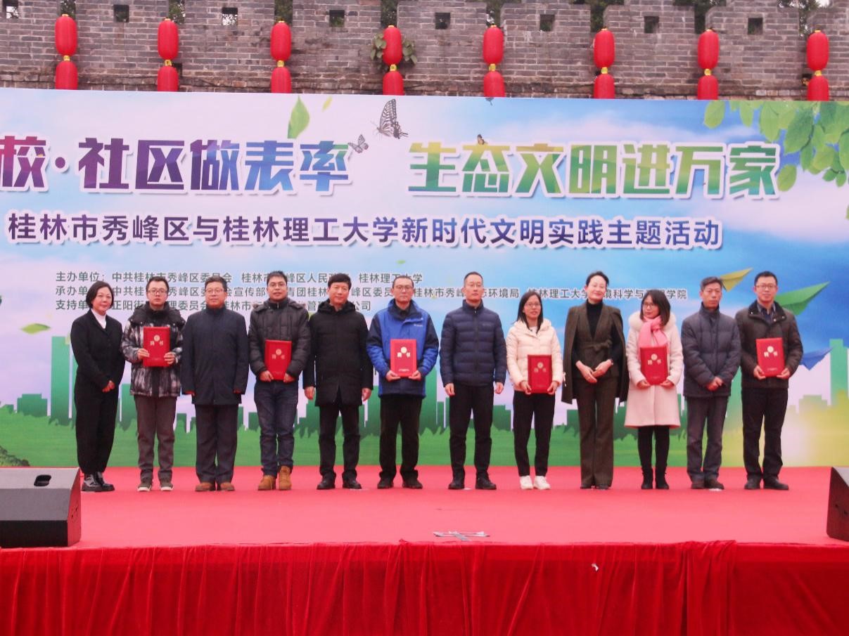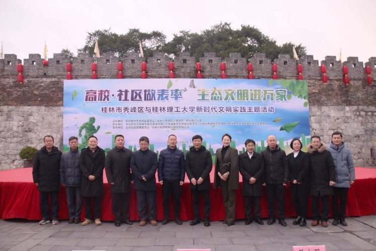 为深入贯彻落实党的十九届五中全会精神,让“绿水青山就是金山银山”生态文明理念深入人心,全面提高在校大学生、市民生态环保意识,进一步加强高校与地方联系,发挥高校服务社会的职能,12月14日下午,以“高校·社区做表率、生态文明进万家”为主题的新时代文明实践主题活动在桂林市秀峰区东西巷拉开帷幕。桂林理工大学校长解庆林,秀峰区委副书记、副区长刘丰华,桂林理工大学党委副书记吴志强及秀峰区四家班子分管领导,桂林理工大学各职能部门及环境科学与工程学院主要领导等出席。我校志愿者及秀峰区居民共200余人参加活动。