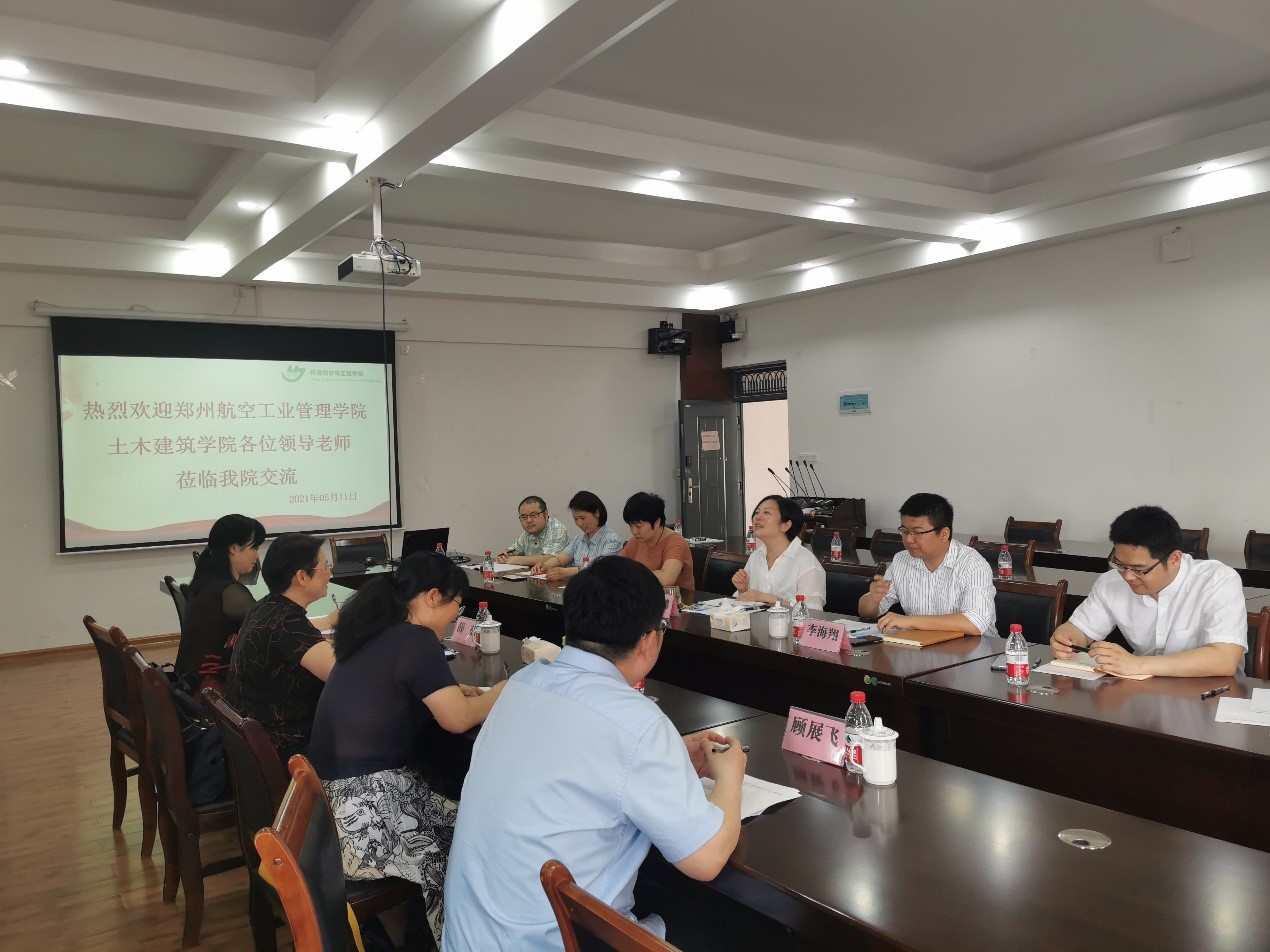 2021年5月11日,郑州航天工业管理学院土木建筑学院在院长薛茹教授带领该校给排水系的专业负责人高军侠教授,系主任李莲秀副教授到我院与给水排水教研室的相关老师进行交流。我院的相关领导和给水排水教研室的老师出席了交流会。
