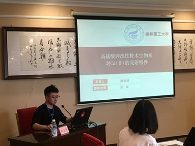 会议期间,来自各校的专家学者和参会人员围绕有机固废处理和资源化利用等主题进行了汇报,分别介绍了各自领域的研究成果,并就碳中和、碳达峰时代,有机固废如何创新、协同发展进行了高端对话访谈。我院张华老师等人参加了该会议,2020级研究生莫贞林在研究生专场做了“高锰酸钾改性桉木生物炭对Cd(Ⅱ)的吸附特性”的专题汇报,介绍了目前重金属的污染概况、锰氧化物负载生物炭的利用以及对Cd(Ⅱ)的吸附机理相关方面研究。