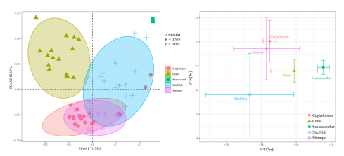 该研究系统研究了北部湾海域无脊椎动物生态化学计量特征及其影响因素,丰富了我国沿海无脊椎动物生态化学计量学数据,为海洋生物地球化学循环及渔业资源的保护和管理提供科学依据。