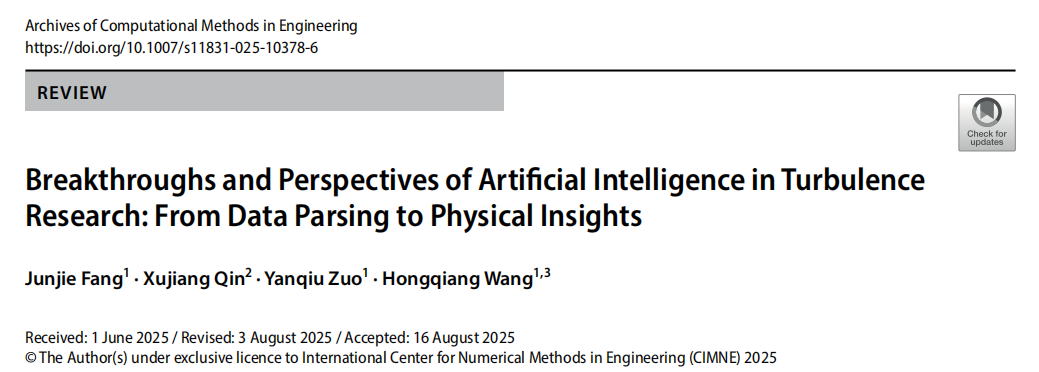 近日,在著名学术期刊Archives of Computational Methods in Engineering上发表题为“Breakthroughs and Perspectives of Artificial Intelligence in Turbulence Research: From Data Parsing to Physical Insights”的综述论文,由我校环境科学与工程学院王洪强团队完成。