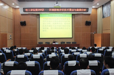 2015年11月16日上午,中国有色桂林矿产地质研究院有限公司张静教授莅临我院,于雁山校区12栋学术报告厅为我院学子作关于“环境影响评价技术要点与案例分析”报告。会议由学院副院长游少鸿老师主持。
