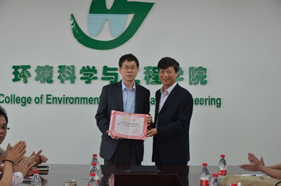 2015年4月30日上午,国际标准化组织水再利用技术委员会秘书长黄永衡教授级高工受聘为我校客座教授,在雁山校区萃华楼4楼环境学院会议室召开座谈会举行受聘仪式,会后黄永衡教授在雁山校区图书馆报告厅做了题为“世界水危机及水领域国际标准新趋势”的学术报告。报告会由环境学院副院长游少鸿主持,校长解庆林、副校长王敦球及环境学院全体师生200多人聆听了报告。