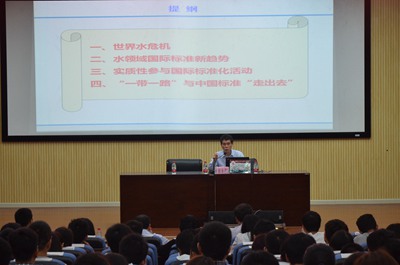 黄永衡教授在会上强调了水资源在二十一世纪的重要性,深入浅出地介绍了世界水危机的前沿性科学问题以及国际发展的新趋势,结合这两点以及中国“一带一路”的新形势提出了标准化对水资源的重要性,同时结合我们的国情提出了“要么我们参与制定国际标准,要么将国际标准中国化”的观点,使得师生们茅塞顿开,进一步提高了师生们的共识与热情。
