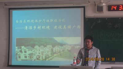 为了响应十八大“生态修复”的口号,我院挂职自治区环保厅李海翔老师应学工办邀请于5月28日下午2点30分在雁山校区05208教室开展了主题为“清洁乡村环境,建设美丽广西”的桂工讲坛。我院党委副书记刘志丽老师出席了本次讲座。