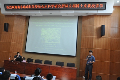 报告会上,林立相博士作了“裂隙水含水层的模型与概化”的报告。分别讲述了模型的“模型概念化的建立、裂隙含水层的概念化、裂隙含水层常见的特征、分离裂隙模式及地下水量化模拟”等几个部分。在报告过程中,林立相博士以Table Mountain Group 裂隙含水层作为实例,分别讨论从含水层边界确定、裂隙介质处理措施、以及模型的建立等一套完整的工作方法,并特别强调关键数据的提取方法的重要性。最后,林立相博士与在场的师生进行了互动交流,对大家提出的问题做了详细而专业的解答。
