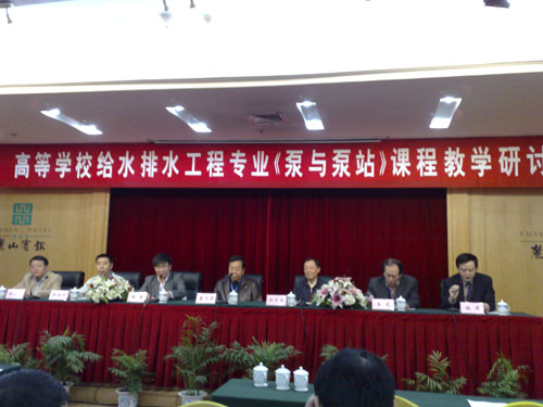 11月7日,由高等学校给水排水工程专业指导委员会主办,湖南大学和广州大学联合承办的全国给水排水专业“泵与泵站”教学研讨会在麓山宾馆召开,来自全国30余所高校的50多名教师出席了研讨会。《泵与泵站》主编、给排水专业指导委员会前委员姜乃昌教授、给排水专业指导委员会副主任委员重庆大学张智教授、委员湖南大学施周教授、广州大学张朝升教授、山东建筑大学王龙教授等出席了研讨会。