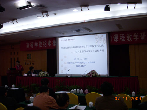 我院赵文玉和周自坚两位老师出席了本次研讨会,赵文玉副教授做了题为“结合案例的专题讲座新教学方法的探索与实践——以《水泵与水泵站》为例”的课程教学经验交流报告,获得了出席的各位老师的好评。