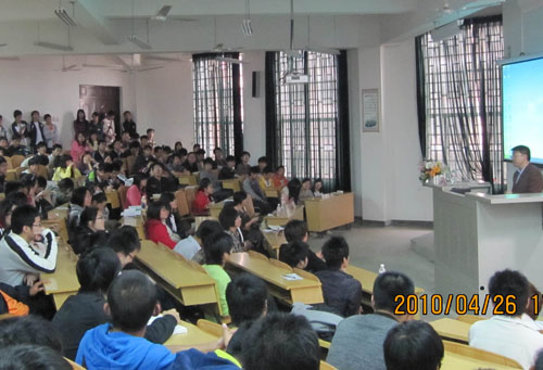 4月26日下午,应我校邀请,高等学校给水排水工程专业指导委员会主任委员、哈尔滨工业大学市政与环境工程学院院长、博士生导师崔福义教授在雁山校区为我院学生做了题为《给水排水工程专业的历史发展与展望》的学术讲座。我院刘康怀院长主持讲座,陪同崔教授的有我院卢英书记、曾鸿鹄副院长。
