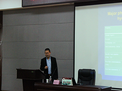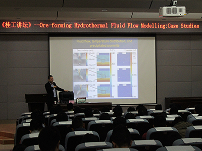 在母校六十华诞即将到来之际,我院非常荣幸的邀请到了毕业校友杨建文教授,于11月10日上午雁山校区逸夫楼01501报告厅为学弟学妹们开展了一场关于“成矿热液流体模拟的案例研究”的学术报告会,讲坛由学院党委书记王璐同志主持,辅导员田明浩及学院部分研究生、本科生聆听。