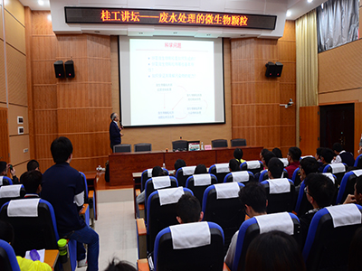 11月11日下午,我院邀请中国科学技术大学博士生导师俞汉青教授做客桂工讲坛,并在雁山校区萃华楼一楼的广西矿冶实验中心报告厅为我院学生做了题为“废水处理中的好氧微生物颗粒”,我院相关专业师生100余人参加了会议。