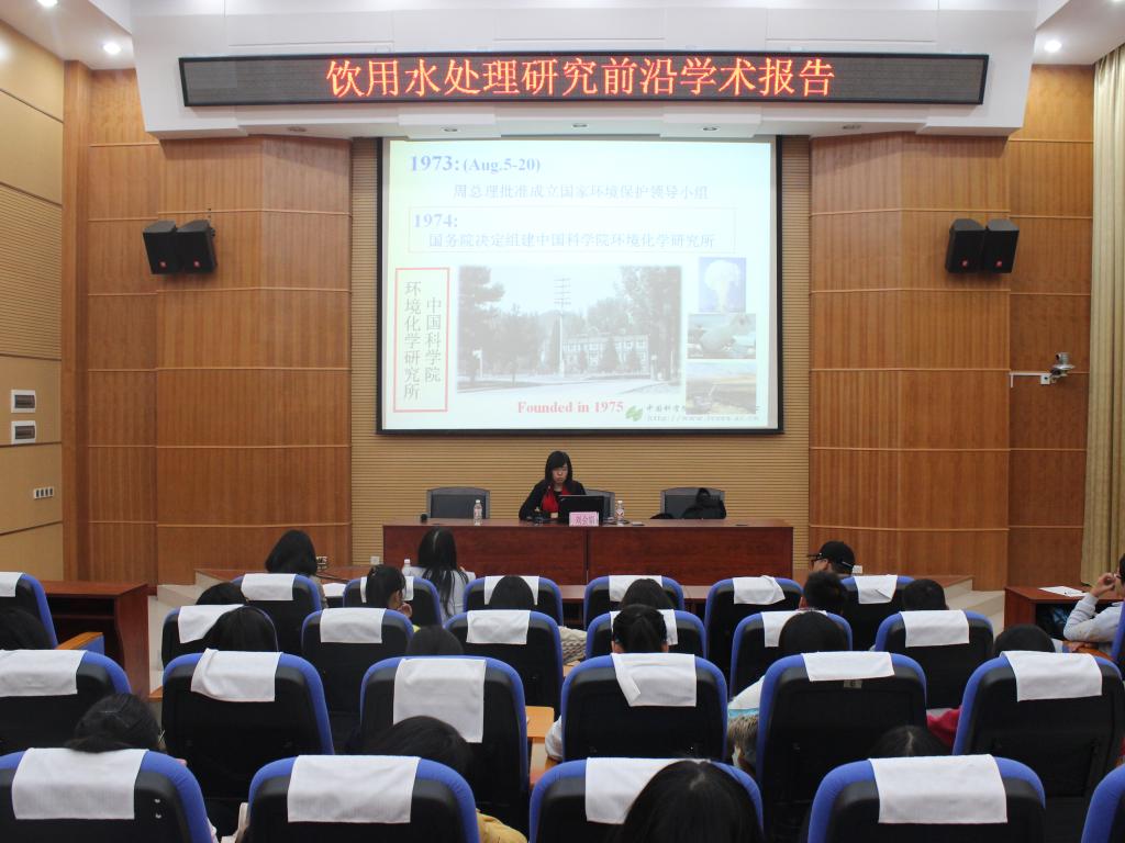2016年12月9日下午2点30分,我院邀请中国科学院生态环境研究中心研究员、国家重点实验室主任刘会娟在雁山校区萃华楼报告厅为作饮水处理研究前沿学术报告,会议由我院副院长李艳红主持,环境工程16级全体同学聆听。