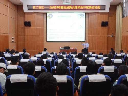 随后,朱勇教授在萃华楼报告厅做了题为“鱼类卵细胞的成熟及排卵的环境调控机制”的学术报告。讲座由游少鸿副院长主持,我院党委书记王璐、部分青年教师、研究生和本科生近80人参加了此次讲座。