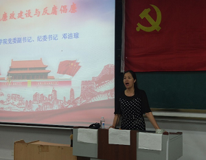 为加强学生党员反腐倡廉意识,6月2日晚,由我院牵头的(环境科学与工程学院、机械与控制工程学院、马克思主义学院、艺术学院、理学院、测绘与地理信息学院)联合分党校第二十一期预备党员培训班在06105开讲。本次党课的主题为“党风廉政建设与反腐倡廉”,邀请外国语学院党委副书记邓洁琼担任主讲,全体培训班学员参加。
