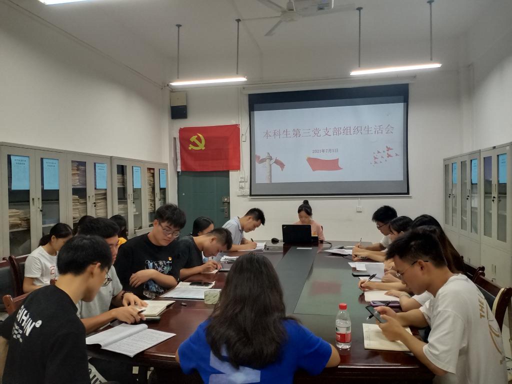为深入推进党史学习教育,认真贯彻“学史明理、学史增信、学史崇德、学史力行”要求。7月5日,我院本科生第三党支部在雁山校区12414会议室召开党史学习教育专题组织生活会。会议由支部书记孙云龙主持,支部党员参加会议。
