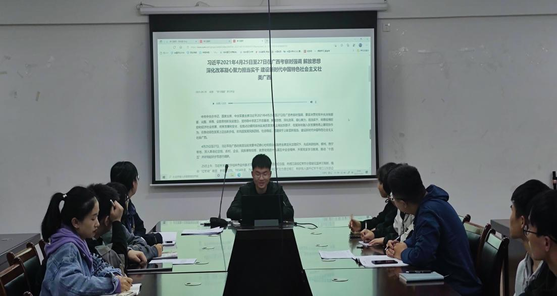 4月30日晚,我院本科生第一党支部在12407会议室召开以“学习习近平总书记视察广西时的重要讲话”为主题的学习活动,会议由支部书记潘泓序老师主持,支部全体党员参加活动。