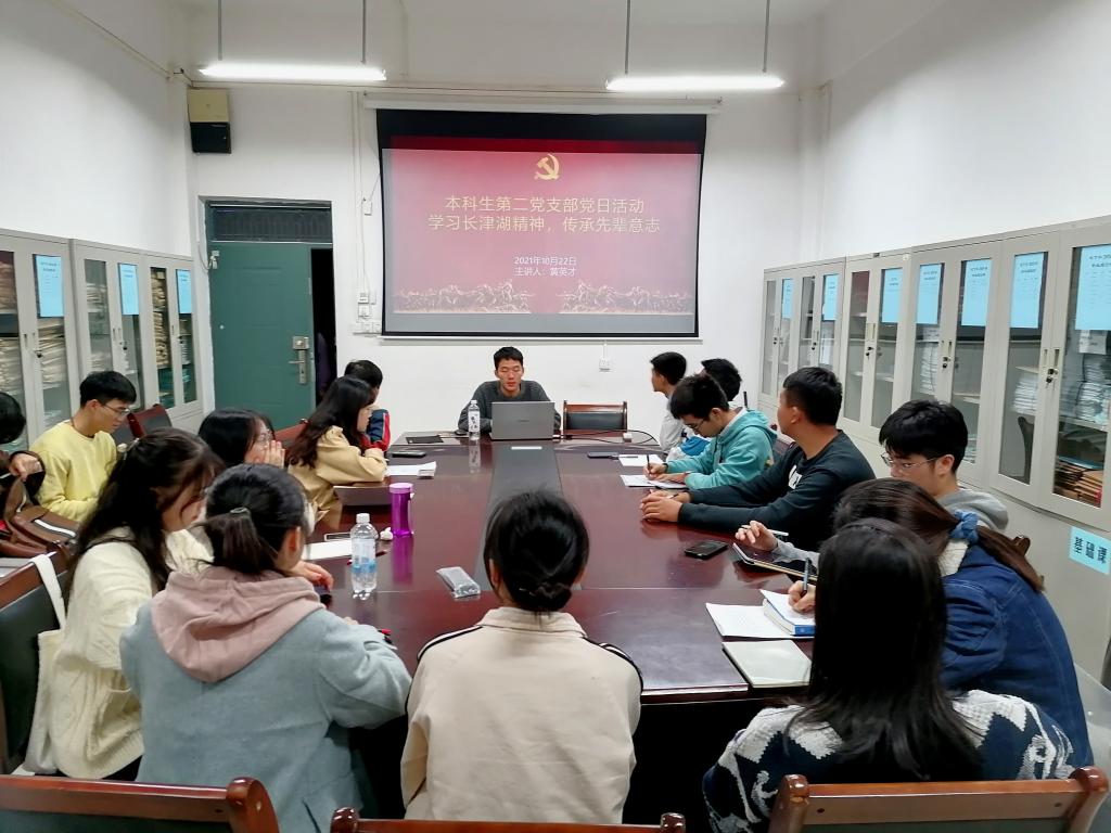 2021年10月22日,环境科学与工程学院本科生第二党支部于12414开展“学习长津湖精神,传承先辈意志”主题党日活动,会议由支部副书记黄英才同志主持,支部全体党员及预备党员参加本次会议。