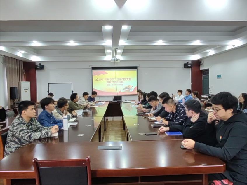 应上级党组织要求,2021年10月22日,我院研究生第四党支部在雁山校区12407会议室开展2021年秋季学期发展对象答辩会,全体党员参加本次会议,会议由副书记石谦主持开展。