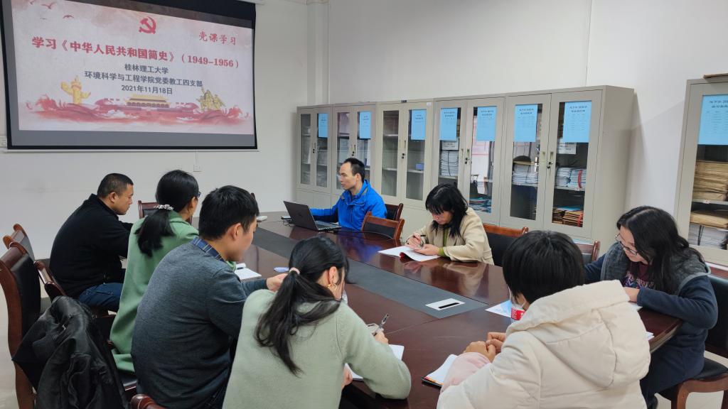 为更好地贯彻党中央关于党史学习教育的要求,11月18日上午,我院教工四支部在雁山校区12414会议室开展《中华人民共和国简史》专题学习,本次党课由梁延鹏同志主持,在集中学习过程中,党支部同志对党课学习内容进行了讨论,并相互分享了学习心得。