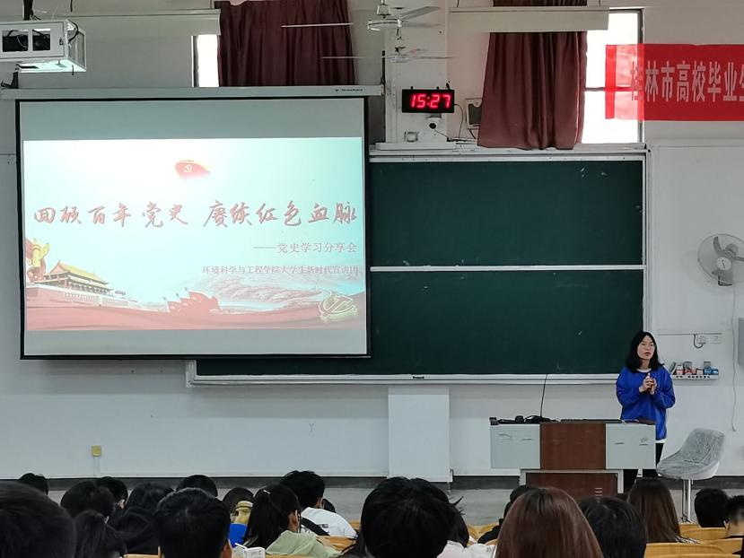 为加强党史学习教育常态化教育,提高广大学生党史理论水平,2021年11月14日,我院在05314举办“回顾百年党史 赓续红色血脉”主题宣讲会,宣讲会由本科生第二支部朱晶晶同志主讲,200余名同学参加了此次宣讲会。