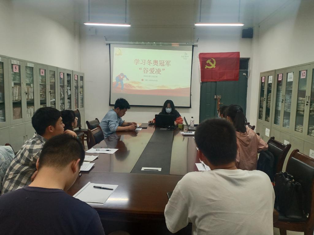 3月16日,我院本科生第三党支部于雁山校区12415会议室开展《学习冬奥冠军“谷爱凌”》主题党日活动,在党支部书记孙云龙老师的带领下,支部党员采取线上线下结合的方式一起展开学习。