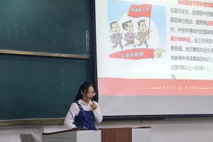 宣讲会上,邓婷婷同志结合时代背景分析了当代大学生的处境,向同学们详细介绍了自己的学习方法与人生规划,重点说明了当代大学生应该与时俱进、锐意进取,努力践行习近平总书记“立大志,明大德,成大才,担大任”殷切期盼,争做社会主义建设的合格接班人,用智慧和成绩报效祖国、回馈社会。此外,她还详细介绍了学校有关奖助政策,倡导同学们积极努力,要做到牢记党恩,砥砺前行。