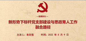党的十八大、十九大确立了“把立德树人作为教育的根本任务”、“把党的政治建设放在首位”的基本要求和目标。为更好的发挥高校基层教工党支部战斗堡垒作用,需要将支部党建与思政育人工作紧密融合。为此,5月9日我院教工三支部开展了《新形势下标杆党支部建设与思政育人工作融合路径》线上主题研讨活动。本次党组织生活会由我院教工三支部书记朱宗强老师主持,全体三支部党员教师参与。
