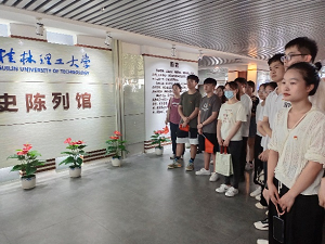 首先参观了桂林近代革命史馆,在讲解员的引领下,我们参观了整个展厅。桂林党史的脉络和细节清晰而生动地展现在我们眼前。桂林是一个红色城市,这里发生了许多重要的革命事件,见证了中国共产党革命的每一个历程,也涌现出了许多爱国的革命将领。通过参观学习,我们重温过去的峥嵘岁月、缅怀先烈的英雄事迹、感受伟人的奉献情怀,接受心灵的净化洗礼。展厅里的一幅幅淡雅泛黄的照片,一个个令人动容的革命故事,给我们带来了极大的震撼。不仅对桂林在成长和发展的历程中经历的艰辛有了深刻理解,也对中国共产党领导下桂林乃至整个中国所取得的成就感到由衷的崇敬。接着,我们参观了校史馆。校史馆面积不大,却记录了桂林理工大学从建校到如今辉煌发展的每一个脚步。从名字的改变、专业的设立、校区的扩建到取得的各项成绩、涌现出的优秀校友,都有详细的介绍。通过参观,我们对自己的学校有了更深的认识,知道了学校改革发展的不易,取得成就的不懈努力,知道了身为一名桂工学子所肩负的责任和使命。桂林理工大学“厚德笃学 惟实砺新”的校训和“勤奋求实 献身开拓”的校风更深深的烙印在了我们每一个人心中。