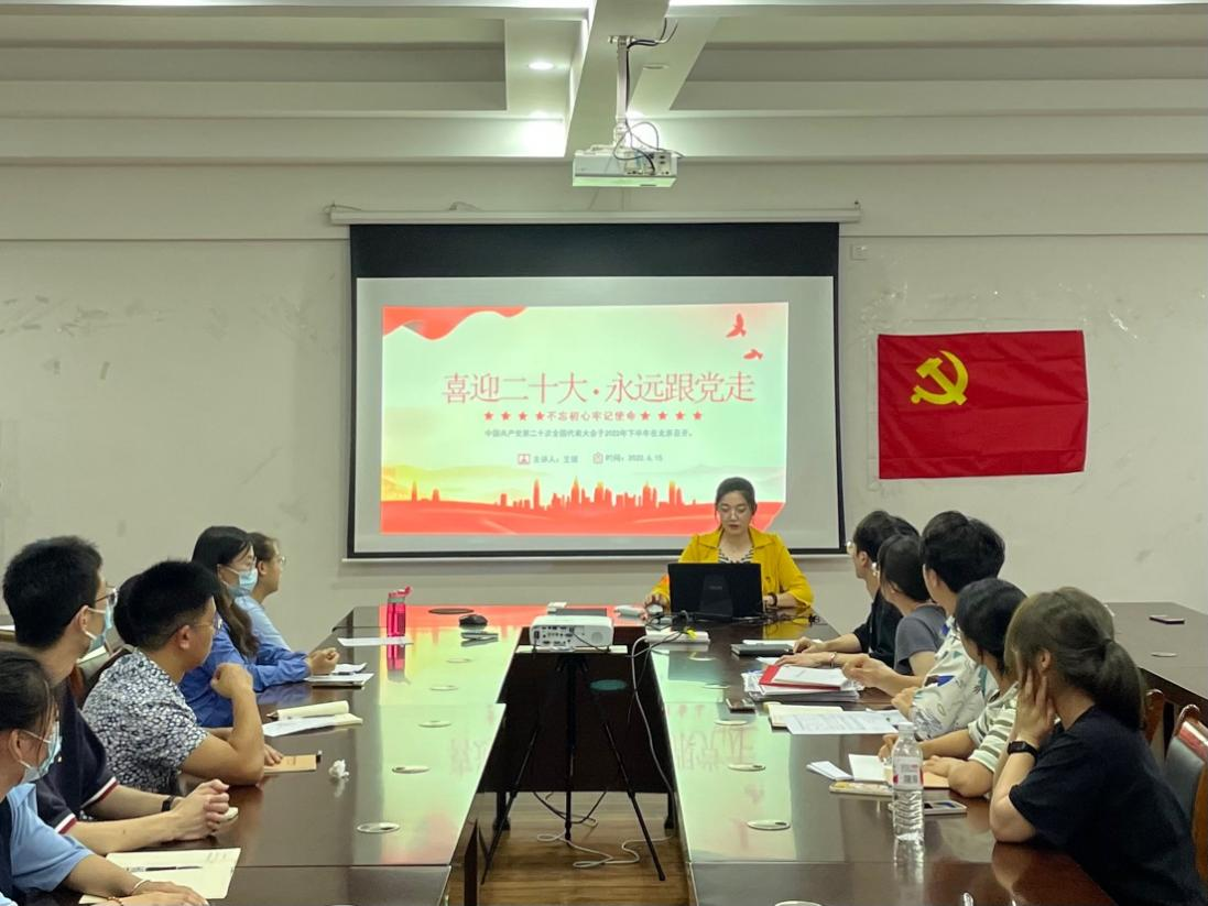 为了加强党员教育管理,发挥党员先锋模范作用。6月15日晚上,我院研究生二支部在雁山校区萃华楼12407会议室组织开展了关于“喜迎二十大,永远跟党走”的主题党课。支部书记及支部全体党员同志、入党积极分子参加此次党课,本次主题党课由支部书记主持。