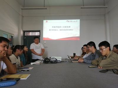 10月22日下午,我院研究生第三党支部在雁山校区萃华楼12412会议室组织开展“践行请党放心、强国有我的青春誓言”主题党课。本次党课由支部副书记路一鸣同志主持,支部全体党员同志参加本次活动。